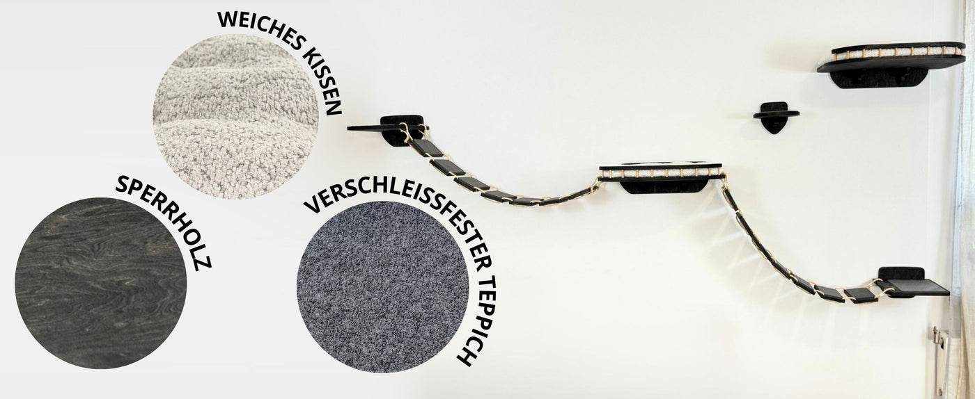 Werten Sie das Leben Ihrer Katze auf und schenken Sie ihr eine vertikale Welt zum Erkunden. Unser großes Katzenwand-Spielplatz-Set ist eine elegante und funktionale Lösung für eine glückliche und aktive Katze.