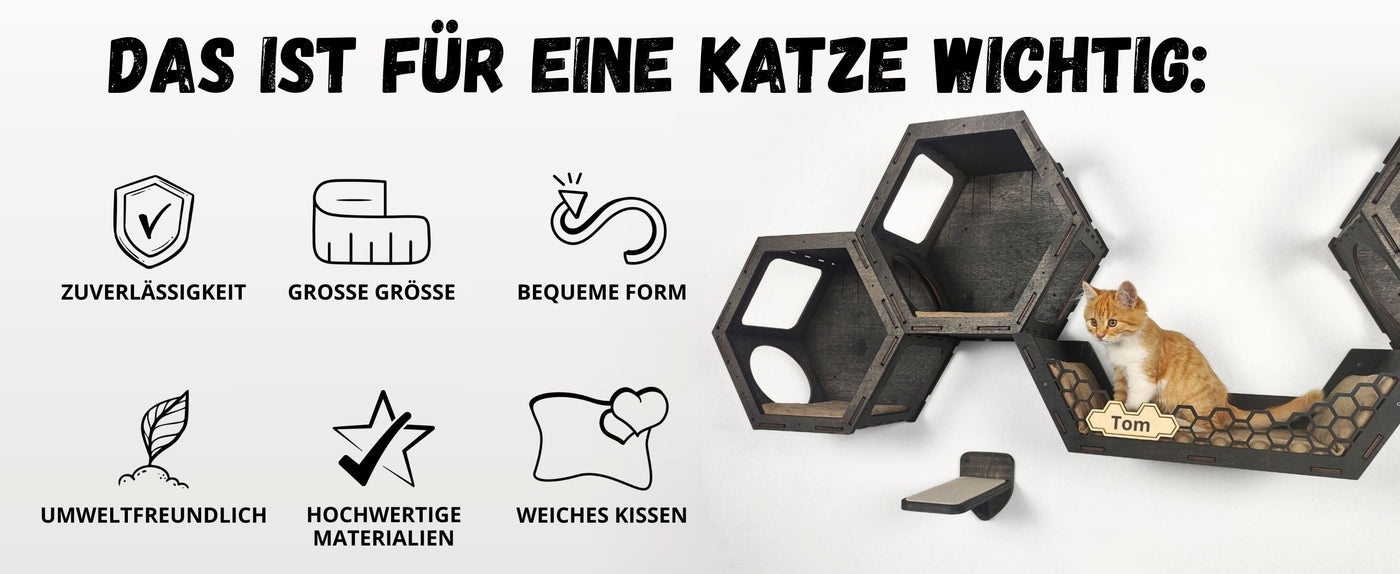 💫Unsere wandmontierten Katzenmöbel sind die perfekte Lösung, um Ihrem Haustier einen gemütlichen Ort zum Entspannen zu schaffen. Sechseckige Regale, ein Katzenbett und geräumige sechseckige Stufen bieten Ihrer Katze mehr Platz. Jedes Regal ist auf die Bedürfnisse Ihrer Katze nach Komfort und Sicherheit zugeschnitten.
