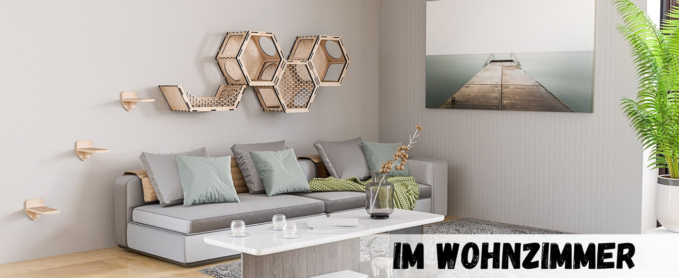 Katzen-Wandregale - 3er-Set Sechseckregale mit Stufen