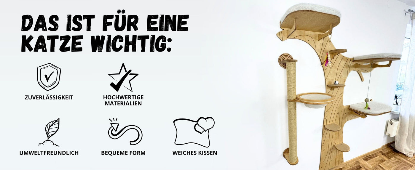 Katzenwandmöbel sind für eine einfache Wandmontage konzipiert. Das Montageset enthält: