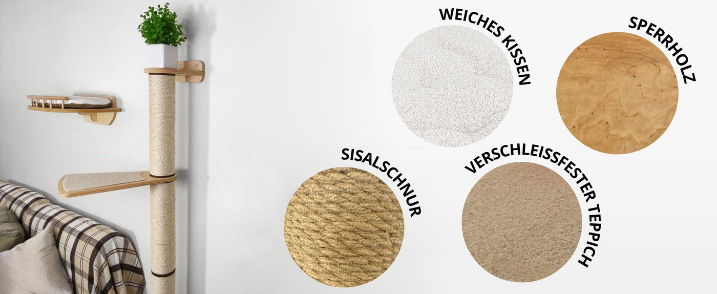 • HOCHWERTIGE MATERIALIEN: Katzenwand-Set aus 15 mm starkem Sperrholz, mit weicher, rutschfester Oberfläche für maximalen Komfort. Die hochwertige Ölbeschichtung schützt das Holz und sorgt für Langlebigkeit.
