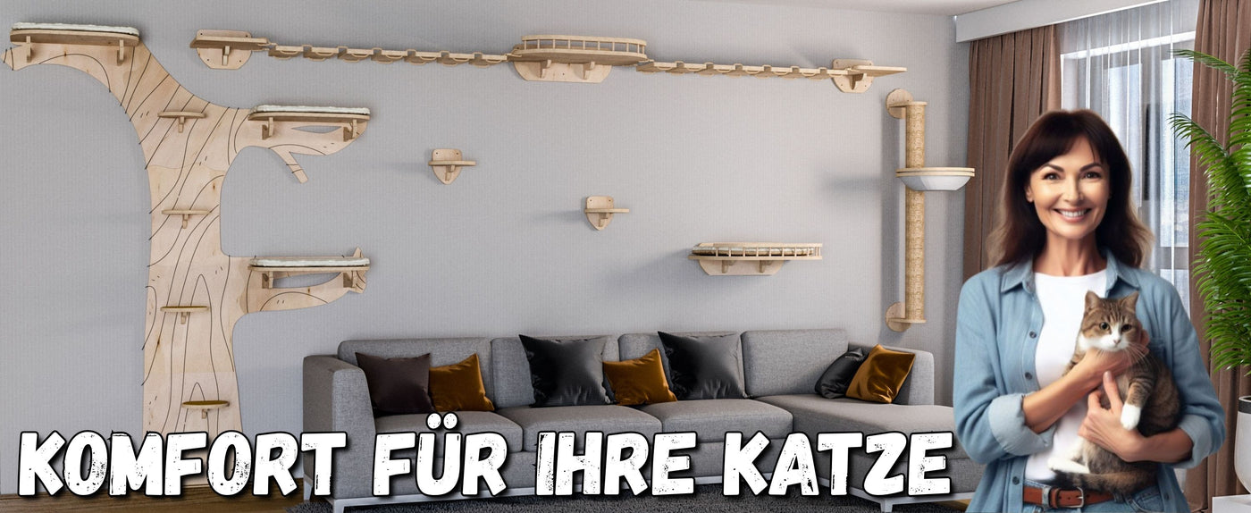 Dieses Set aus hochwertigem Birkensperrholz und natürlicher Holzölbehandlung ist nicht nur funktional und langlebig, sondern fügt sich auch harmonisch in jedes moderne Interieur ein. Ideal für einen vertikalen Spielplatz, der Ihre Katze aktiv und glücklich hält und sie von Ihren Möbeln fernhält.