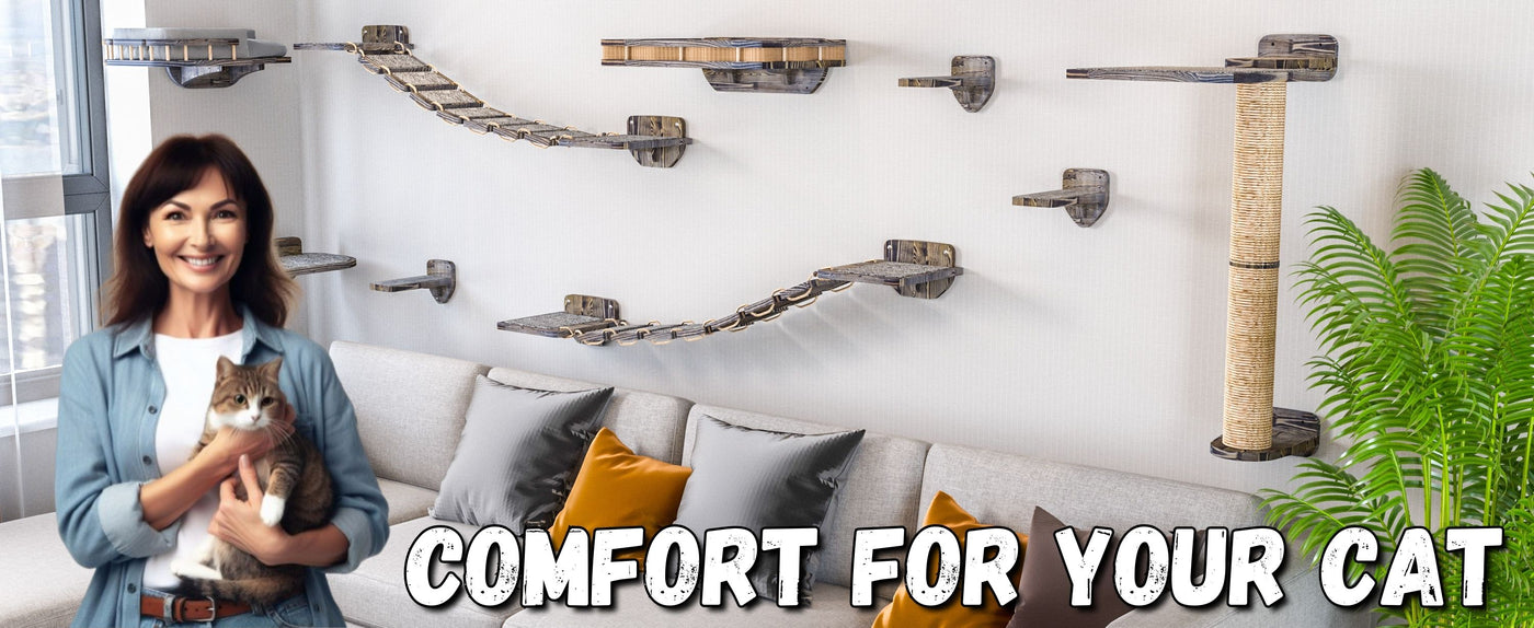 The cat bridge is something that many cats love. Some cats are afraid to step on the bridge at first, but over time they run along it with ease. You can choose the length of the bridge and the mount type.