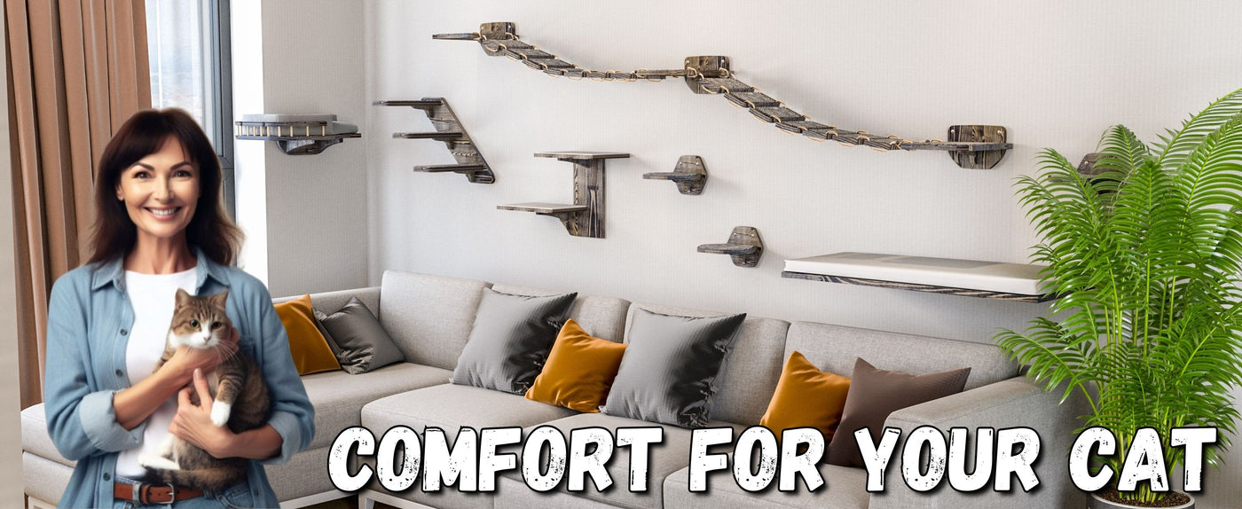 You can also complement yourcat wall playground with a comfortable bed with a soft pillow.