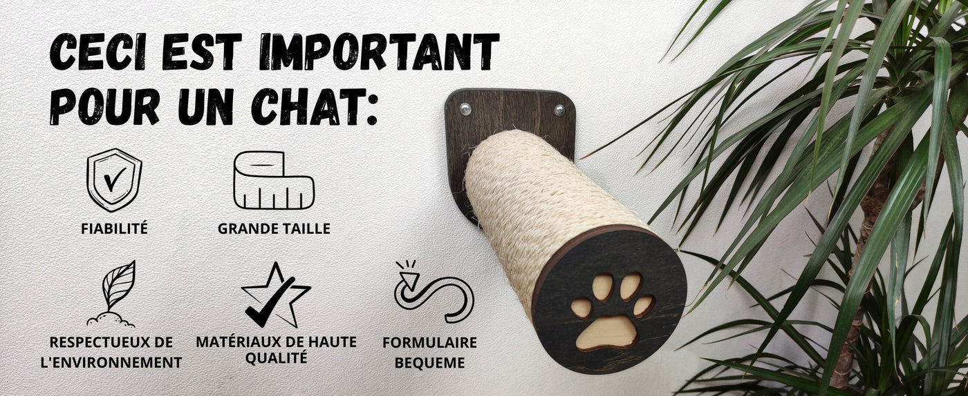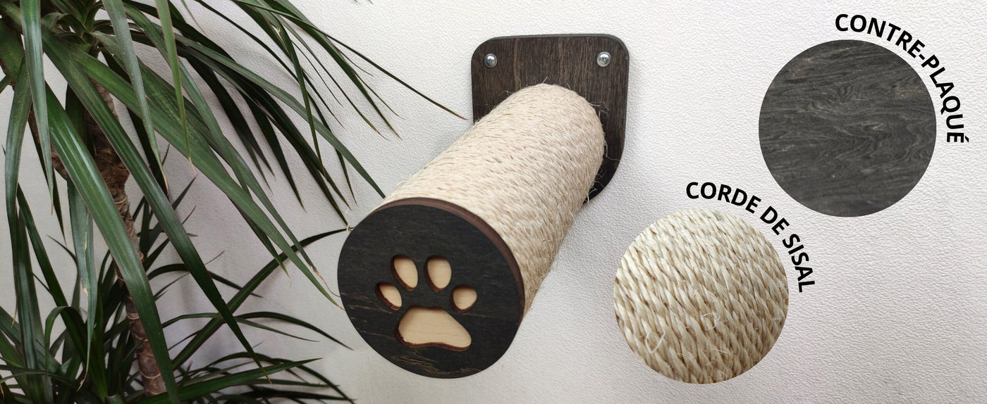 Nous fournissons des ancrages universels (pour tous types de murs). Chaque ancrage peut supporter un poids allant jusqu'à 15 kg. Nous fournissons également les vis pour l'assemblage du griffoir.
