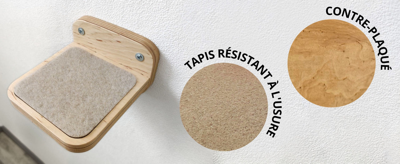 Découvrez notre dernier meuble pour chat : le Mini Cat Step ! Les mini-marches sont la solution idéale pour rendre votre mur pour chat encore plus pratique et fonctionnel. Installer plusieurs mini-marches permettra à votre chat d'explorer encore plus de coins intéressants sans prendre trop de place. Notre étagère murale pour chat est très fiable. Nous utilisons du bois de pin imprégné d'une huile écologique. Nos marches sont très résistantes, car les tapis sont solidement collés, empêchant votre chat de les arracher. Le mini-marche présente un design minimaliste qui s'intègre parfaitement à tous les intérieurs ; il vous suffit de choisir la couleur qui vous convient le mieux. Vous pouvez également opter pour unensemble de cinq mini-marches pré-assemblées à un prix plus avantageux.
