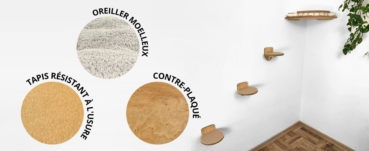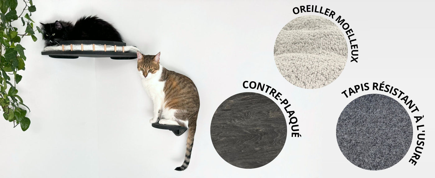 L'étagère est équipée d'un coussin au design amélioré, qui non seulement améliore le confort, mais offre également un soutien optimal au chat pendant son repos. Fabriqué en matériaux écologiques, le coussin est doté d'un revêtement double face, ce qui lui permet de durer plus longtemps et de s'adapter à votre intérieur.