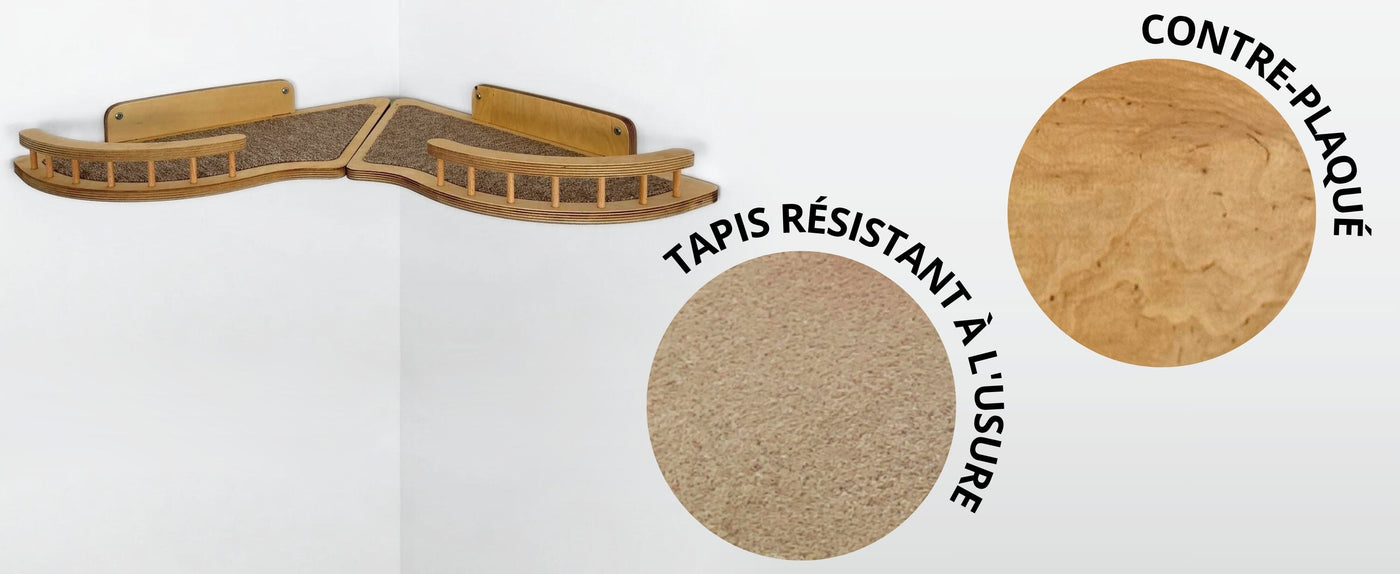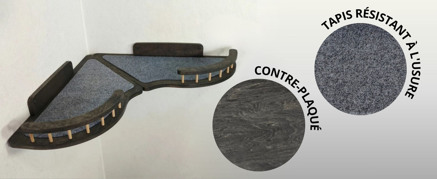 Apportez style et confort à votre intérieur avec cet ensemble d'étagères d'angle pour chat ! Fabriquées en pin durable enduit d'huile naturelle, ces étagères sont à la fois fonctionnelles et esthétiques. Chaque étagère est recouverte d'une moquette de haute qualité pour le confort et la sécurité de votre chat. Utilisez-les ensemble pour créer un coin cosy ou séparément pour créer plusieurs espaces où grimper et se détendre. Un choix idéal pour embellir l'espace personnel de votre chat !