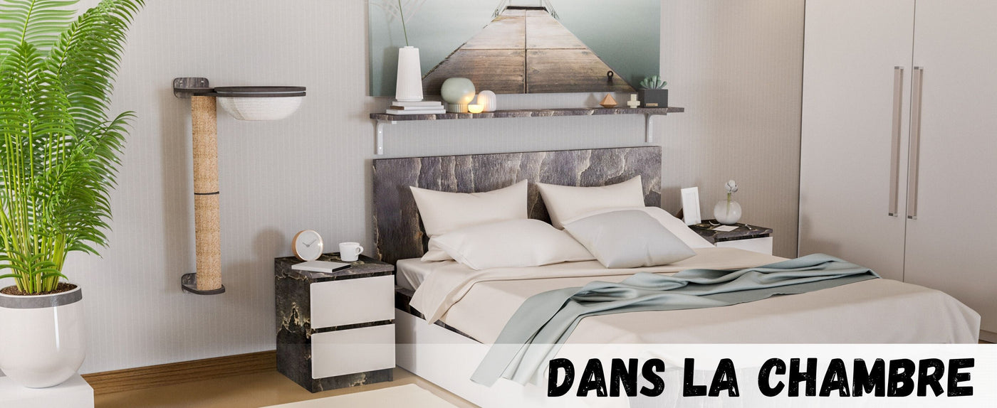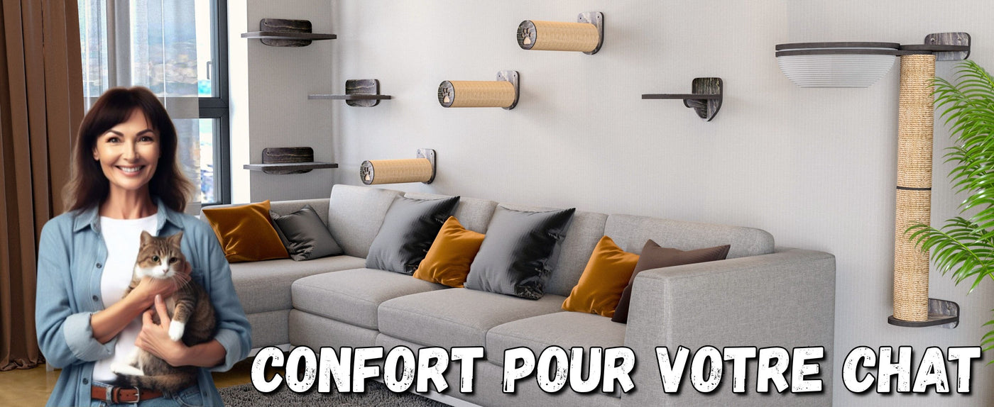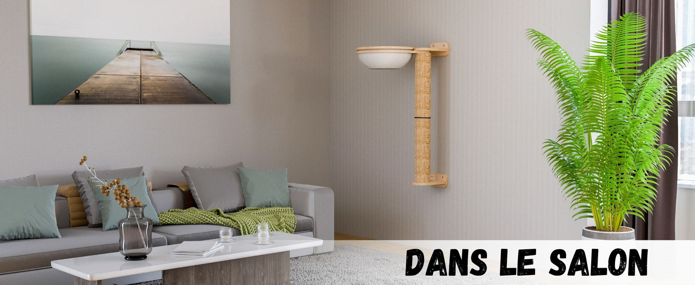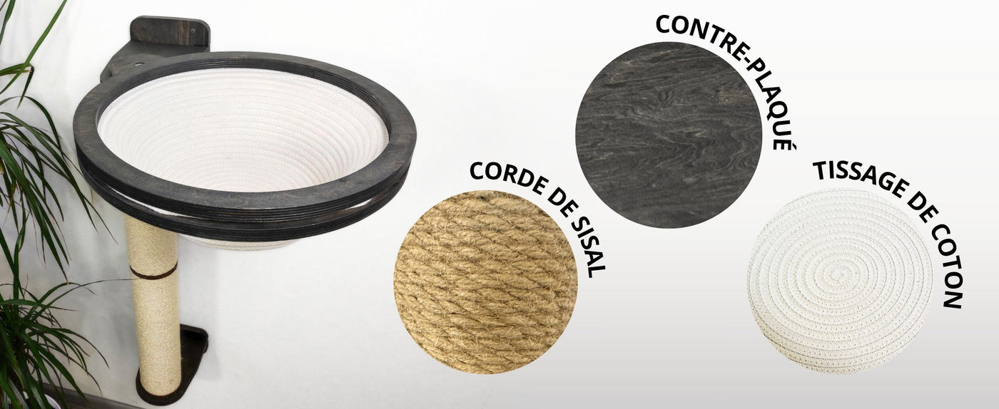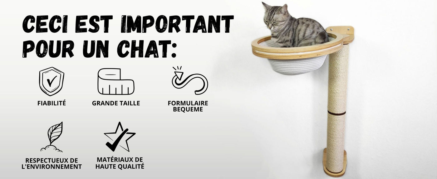 Nous vous recommandons d'ajouter les marches rondes fixées au mur à cet arbre à chat pour aider votre chat à accéder à la zone de couchage.