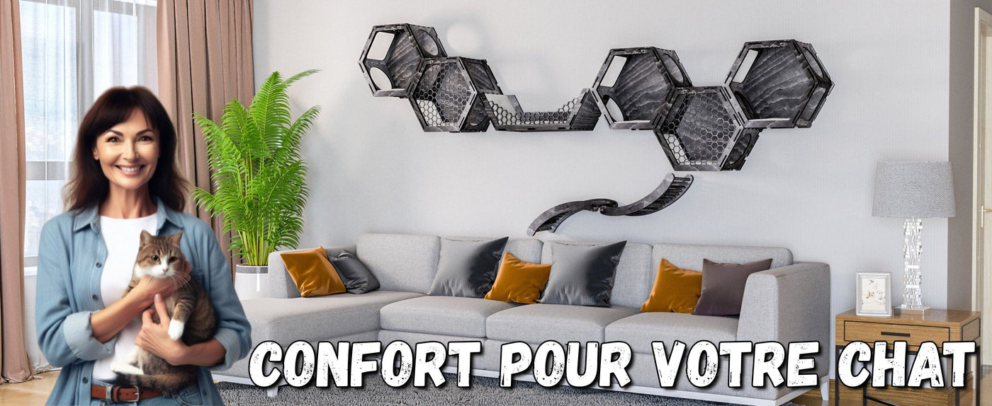 Offrez à votre chat un endroit douillet et élégant pour observer le monde d'en haut ! Ce panier mural hexagonal unique est conçu pour devenir le nouvel endroit préféré de votre compagnon. Les chats ont un instinct naturel pour grimper et trouver des points d'observation en hauteur, et ce panier leur offre un perchoir sûr et confortable, rien que pour eux.