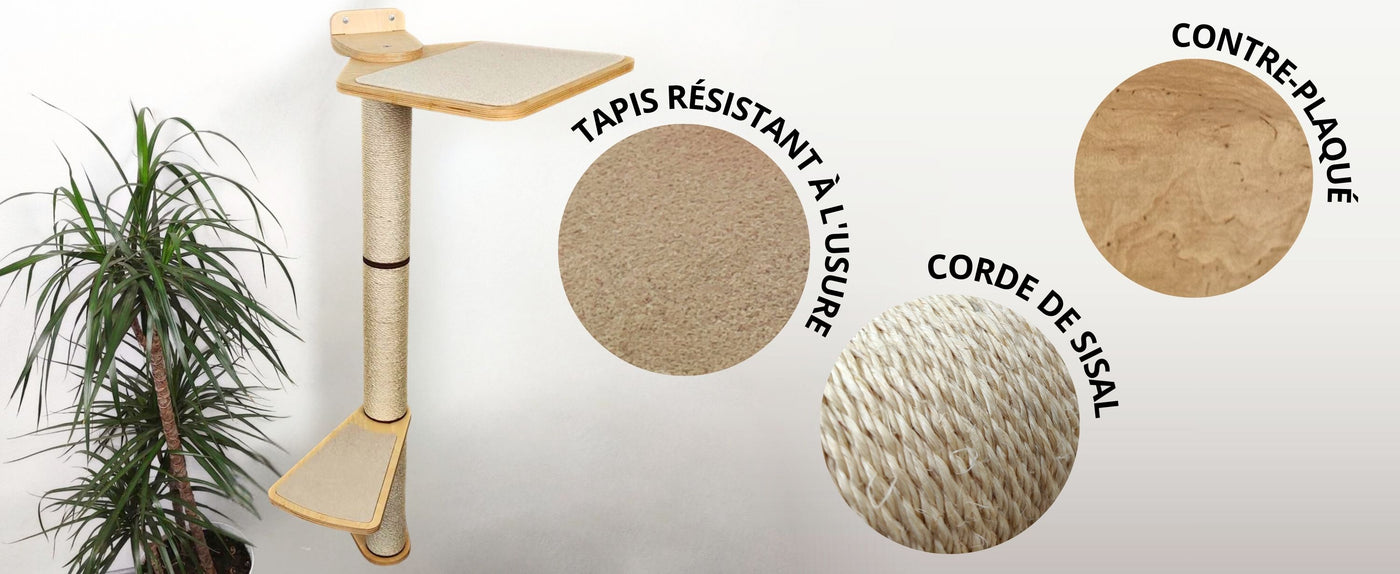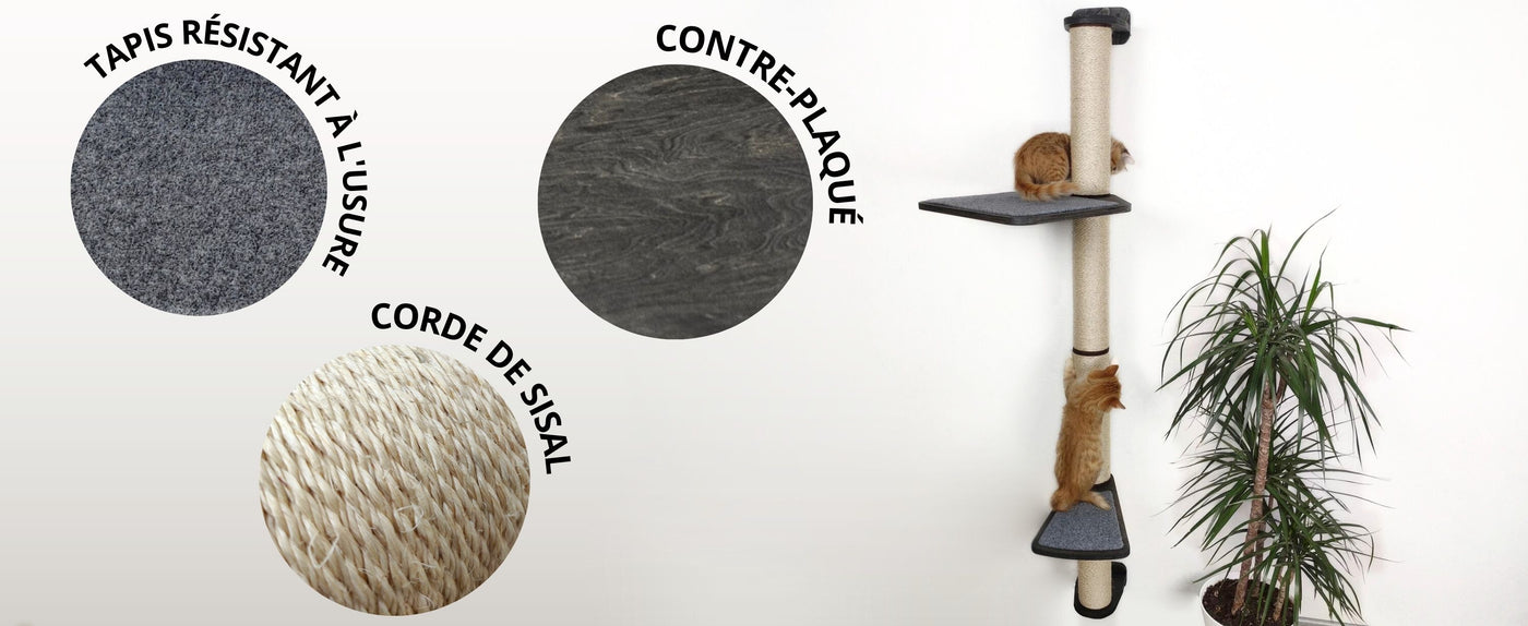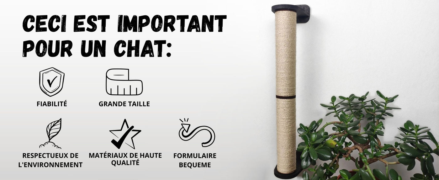 Un griffoir mural vertical offre des avantages uniques : il économise de l'espace au sol, s'intègre parfaitement à votre mobilier moderne et offre une expérience de grimpe et de grattage plébiscitée par les chats. Sa conception robuste garantit une utilisation durable, et son empilabilité modulaire vous permet d'adapter la hauteur à votre espace et aux besoins de votre animal. Offrez à votre chat un espace élégant et fonctionnel pour jouer, faire ses griffes et se détendre, sans encombrer votre maison !