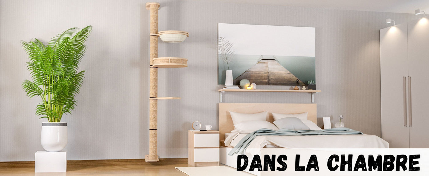 Offrez à votre chat le parfait équilibre entre exercice, confort et exploration verticale grâce à cet ensemble griffoir mural en sisal. La haute colonne à griffer favorise le soin naturel des griffes tout en servant de passerelle verticale entre deux espaces de repos : idéal pour des siestes douillettes et des moments de détente en hauteur.