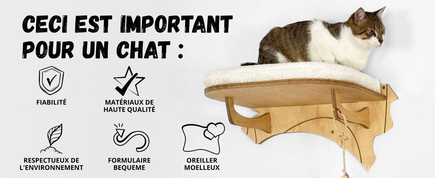 Le mobilier mural pour chat est conçu pour une fixation murale facile. Le kit de montage comprend :