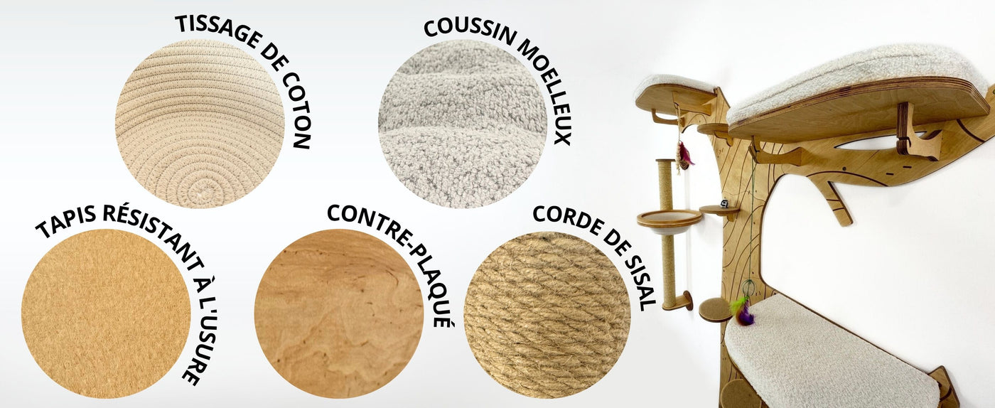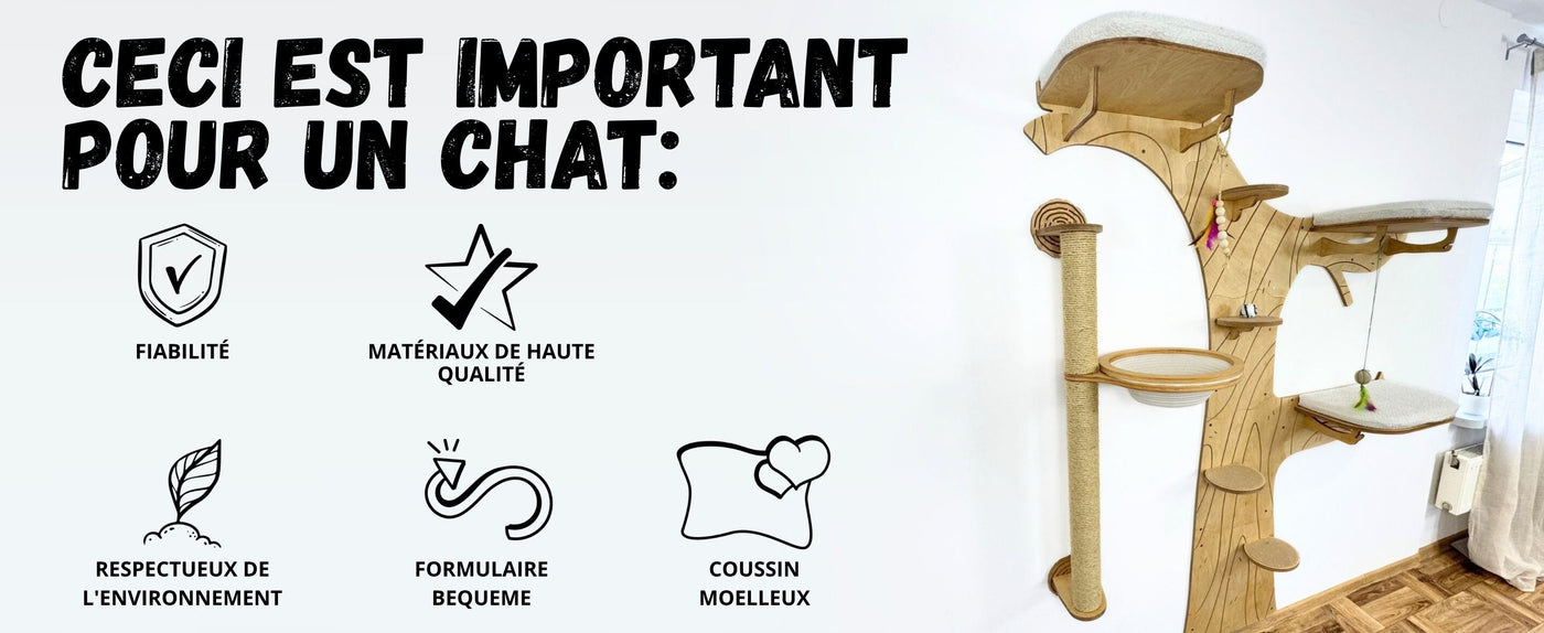 Le mobilier mural pour chat est conçu pour une fixation murale facile. Le kit de montage comprend :
