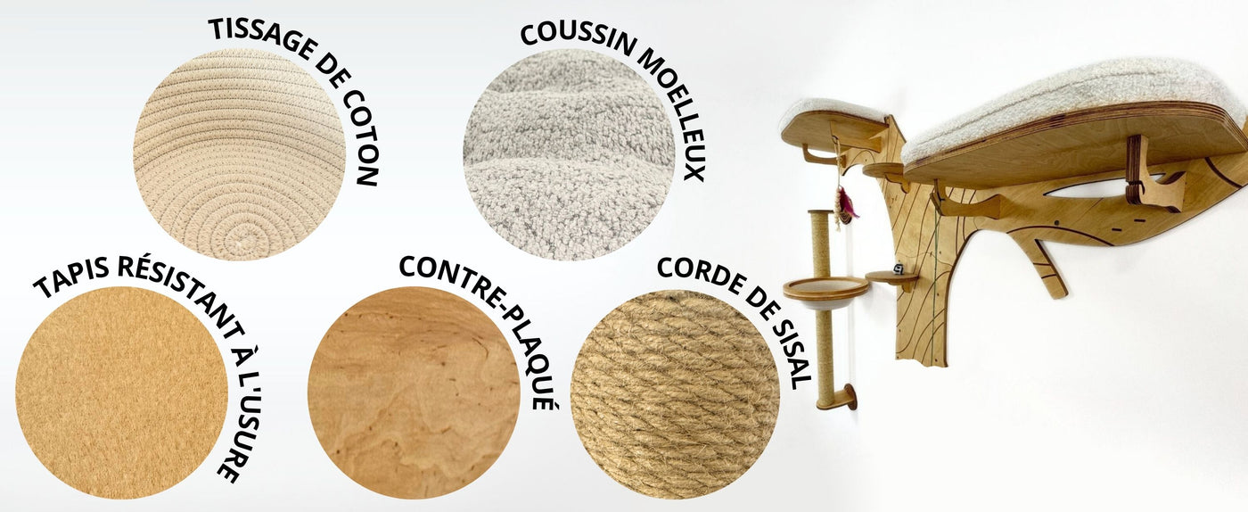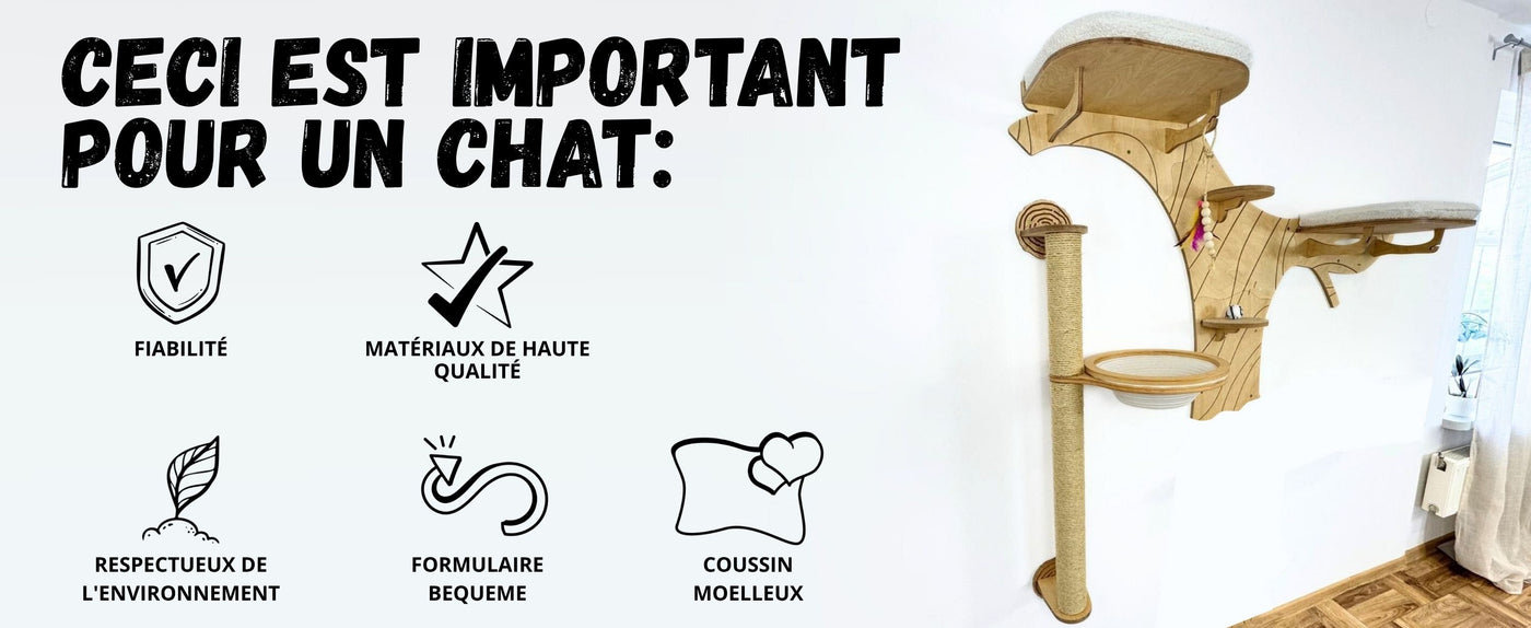 Le mobilier mural pour chat est conçu pour une fixation murale facile. Le kit de montage comprend :