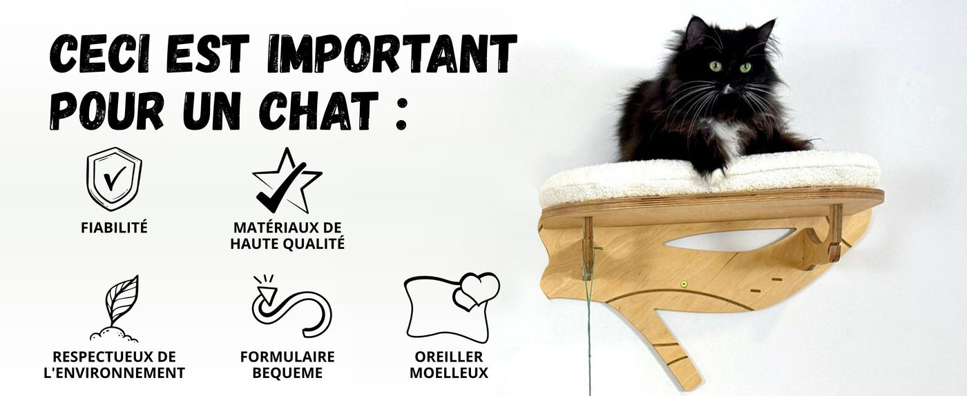 Le mobilier mural pour chat est conçu pour une fixation murale facile. Le kit de montage comprend :