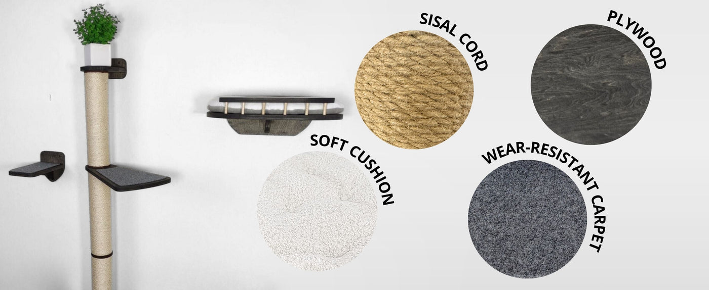 Every cat wants to have a play complex. After losing its real habitat, the cat doesn't lose its instincts. Cats love to run, climb, relax and look down on what is happening. We are confident that this cat play set will be a great addition to your interior.