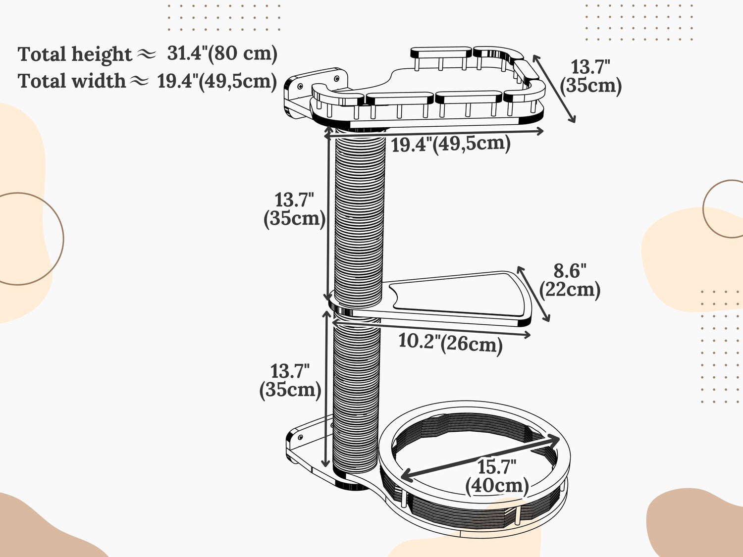 - Two cushioned rotating shelves (19.4" × 13.7" / 49.5 × 35 cm) for cozy lounging;