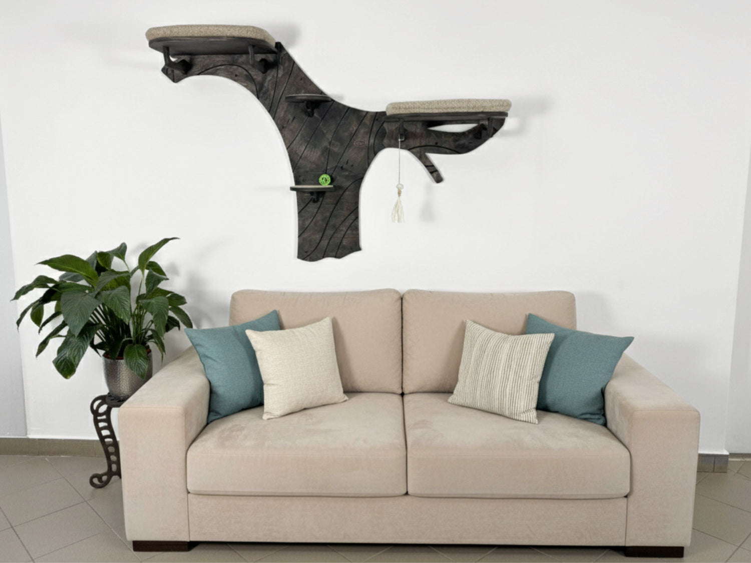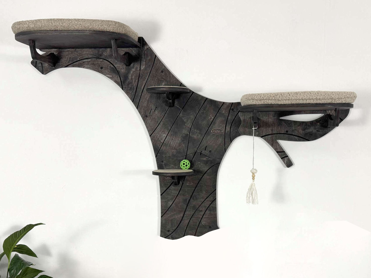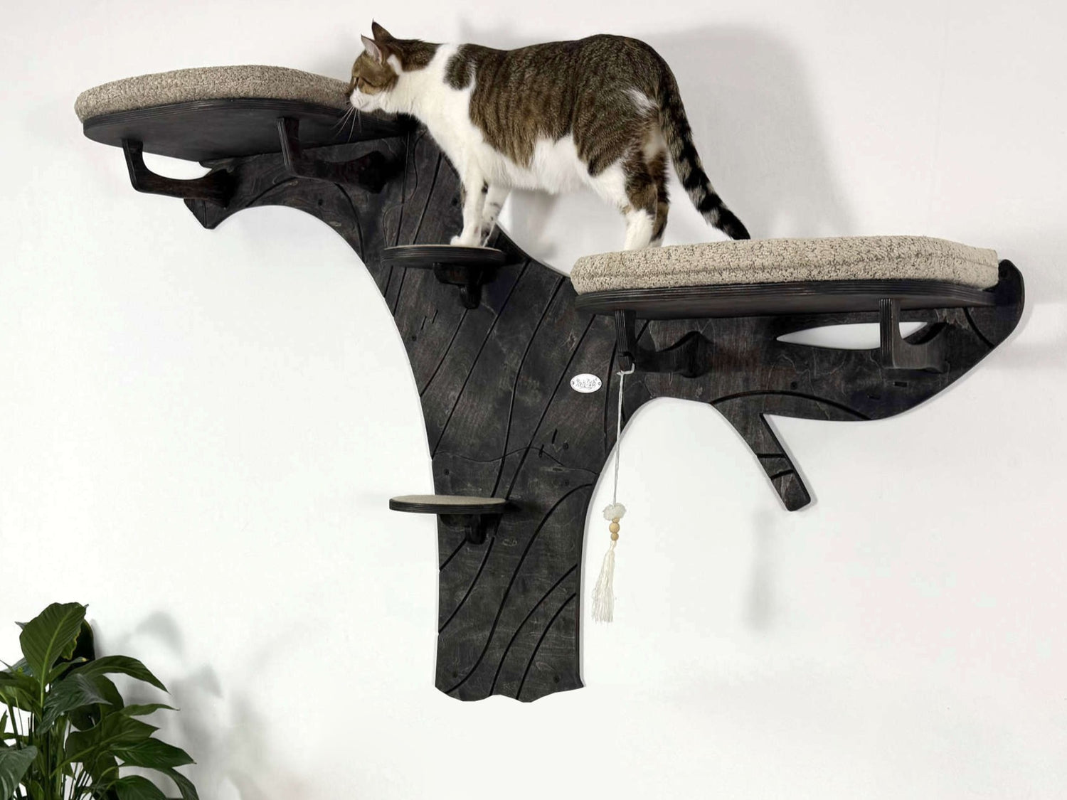 Create a true feline paradise on your wall with our tree-inspired modular climbing system. This vertical cat furniture combines beauty and functionality, offering your pet cozy resting zones, safe climbing paths, and soft cushions. Each piece, made from durable 15mm birch plywood, is treated with eco-friendly oil, perfectly complementing modern interiors. The Velcro-attached cushions are easy to clean, and carpeted steps ensure a secure grip. Thanks to its modular build, installation and customization are simple, making it ideal for those who value flexibility and style.