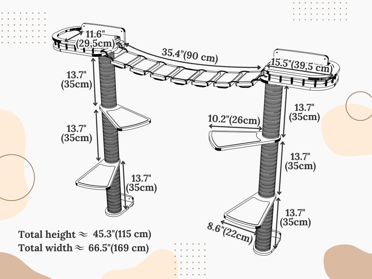 Wall Mounted Cat Tree with Bridge & Scratching Towers – Buy Today – RshPets