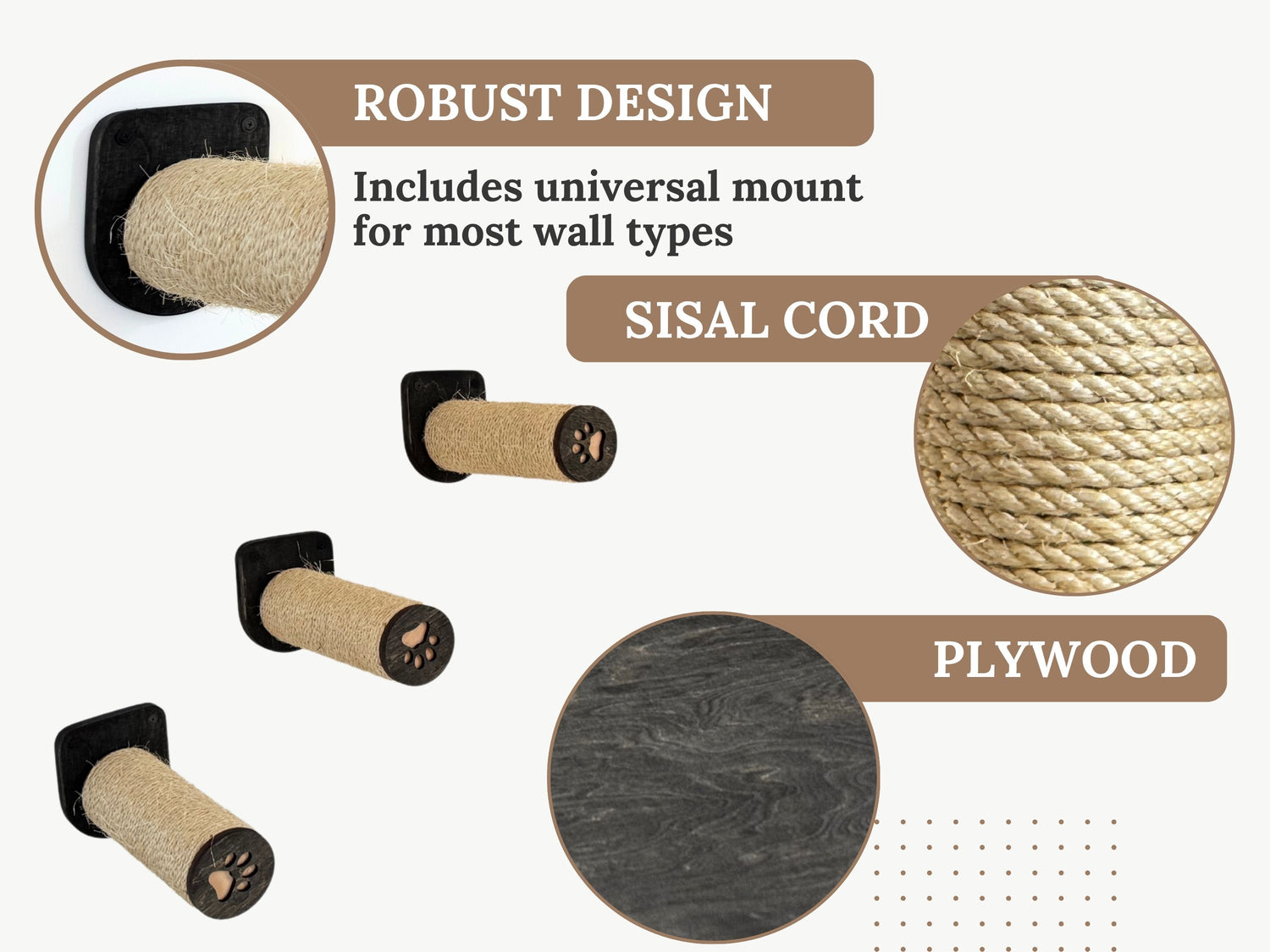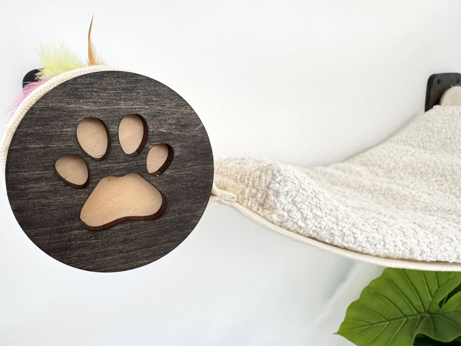 This wall-mounted cat hammock combines comfort and activity in one set. The hammock is supported by two sisal-wrapped steps, holding a durable fabric base with a removable cushion. To make it easier for your cat to reach the hammock, we’ve included additional sisal climbing steps.